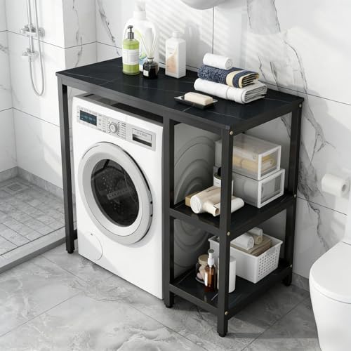 GUAWJRZDP Étagère de Rangement Au-dessus de La Machine À Laver, Support de Superposition Pour Lave-linge Et Sèche-linge, Étagère de Rangement Multifonctionnelle Sur Pied(Nero,24.4x23.6x37.4in)