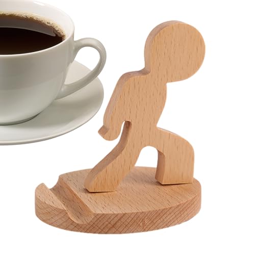 Angoily Support Téléphone Portable en Bois Motif Chat Mignon, Berceau Stable pour Smartphone, Support de Bureau Compact pour Maison et Bureau, Accessoire Décoratif Pratique pour Téléphone