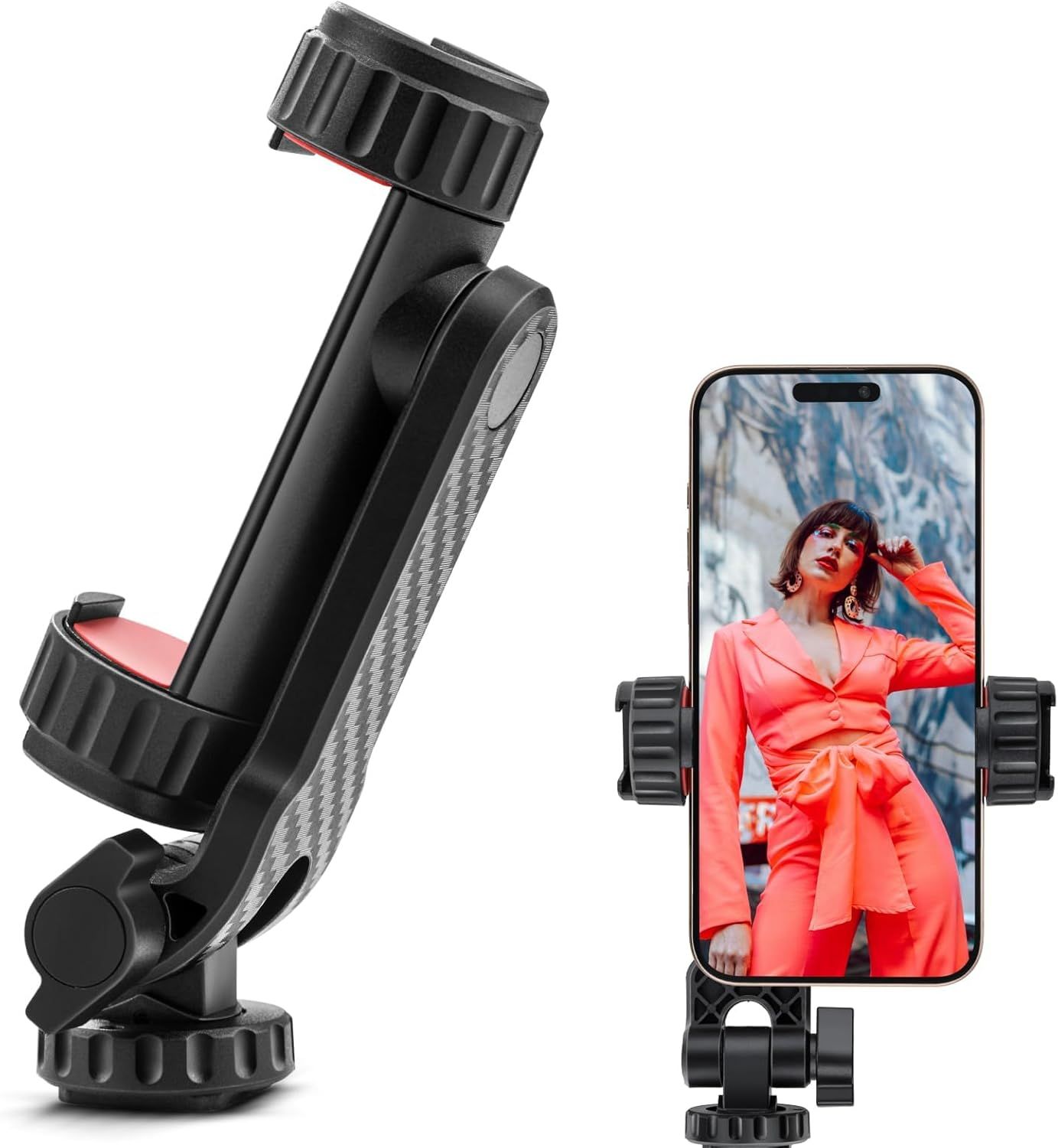 JUBORUI Adaptateur Trépied Smartphone, Support Telephone trepied avec 3 Trou fileté de 1/4" & 4 Cold Shoe, Rotation 360º Adaptateur Universel de Téléphone pour iPhone, Galaxy, DSRL Caméra.