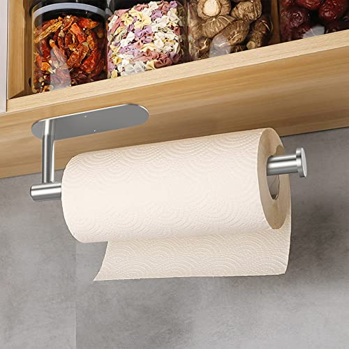 Drucilla Porte Essuie Tout Auto-Adhésif, Porte Rouleau Sopalin Support pour Papier Cuisine, Support Essuie-Tout Dérouleur Mural sans Perçage pour sous l'Armoire/Salle de Bain, Métal 26cm Gris