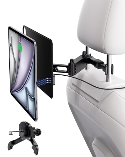 KU XIU Chargement sans Fil Magnétique Support Tablette Appui-tête pour iPad Pro 11/Air 11 M2/M3, Support Tablette Long Bras pour Siège Arrière Enfants, pour iPad Pro 11" 1/2/3/4, Air 10.9" 4/5