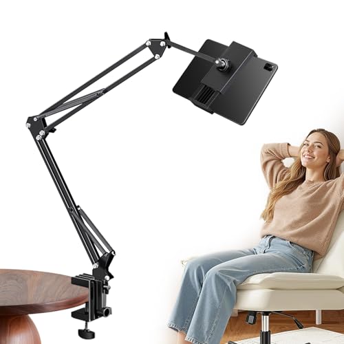 Jubor Support de Tablette de Bureau, Support de Tablette pour Lit, Pieds de Bureau Pivotant à 360° avec Bras Long Réglable pour iPad, Pro, Mini, Air 4.7-12.9 Pouces Tablette Téléphone
