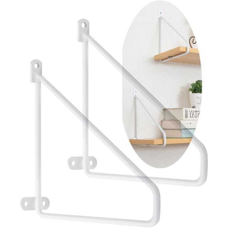 2 pièces Support d'étagère Acier massif,Support Etagere triangulaire Equerre Murale de cloison murale trépied Cadre Tablette Flottante (25cm,White)