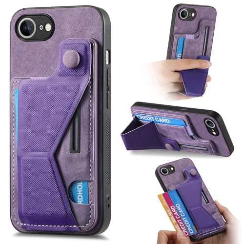 COQUE pour Apple iPhone 16e, avec Rail Coulissant et Support, Design rétro en Cuir avec Fente pour Carte, étui de téléphone Antichoc, pour Apple iPhone 16e-Violet