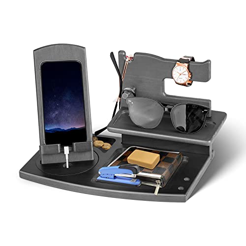 1STKER Cadeau Homme,Organisateur de Bureau pour Mari,Support Telephone Bureau–Organiseur de Table de Nuit–Cadeau Anniversaire pour Homme ou Papa Support Montre Cadeau Homme Noël Support Porte Monnaie