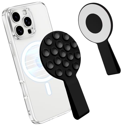 Pnakqil Support Telephone Ventouse Magsafe, Support Magnétique pour Téléphone Portable Compatible avec iPhone 16/15/14/13/12 Series, Support pour Téléphones Mobiles pour TikTok Videos et Selfies, Noir