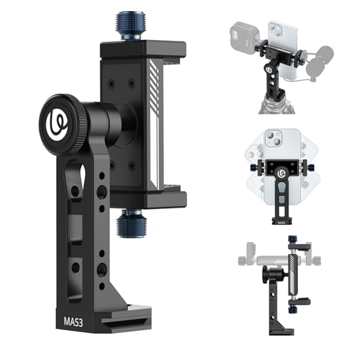 ULANZI MA53 Support Telephone Trepied en Métal avex Arca Swiss et Uka, Support Smartphone Trepied avec Rotation à 360°, Clip Universel pour Téléphone avec Trou de 1/4"|3/8 pour Video Vlog Recroding