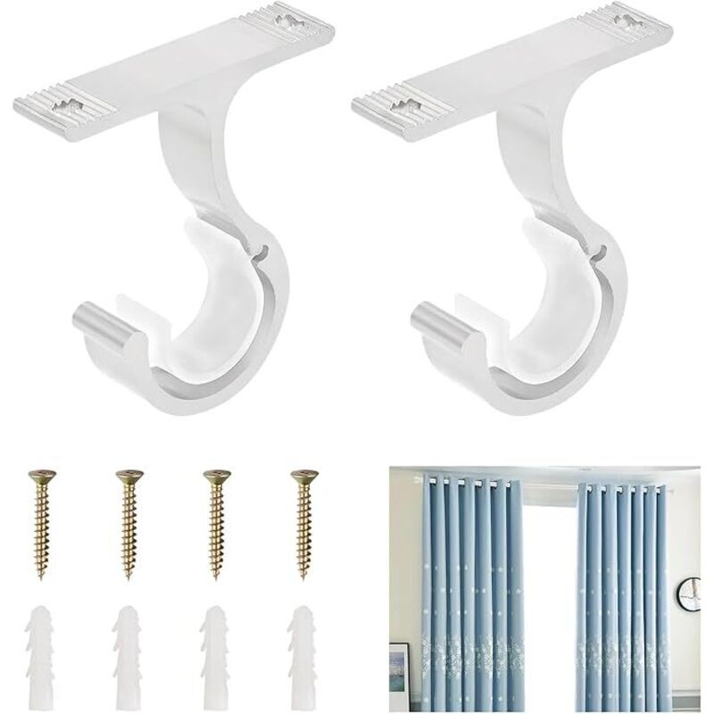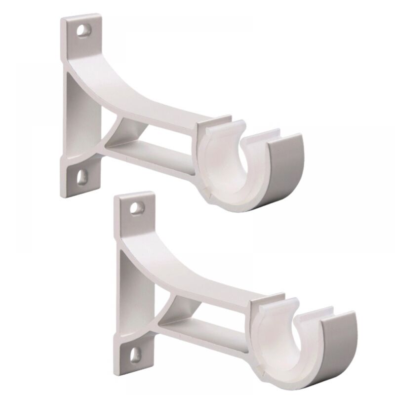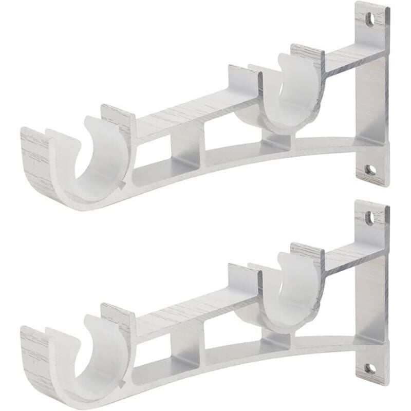 2pcs Tringle à Rideau Supports en Alliage d'aluminium Double Support Porte-Tringle à Rideaux (Blanc)