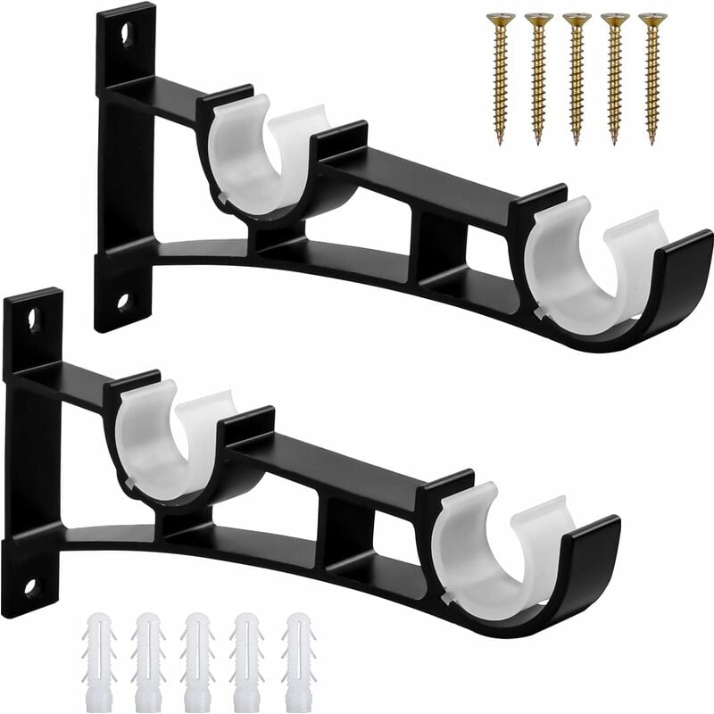 Support de Tringle à Rideaux Double Draperie Tringle Supports Noir Supports de Tringle à Rideaux en Robuste en Alliage D'aluminium avec Vis Supports