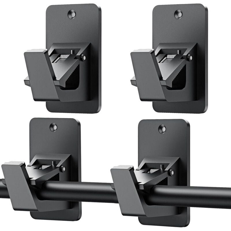 Support de Tringle à Rideaux Support Tringle Penderie avec Vis Support Tringle pour Armoire, en Acier Inoxydable Finition Noire, Diamètre 26 mm, 4 Pcs