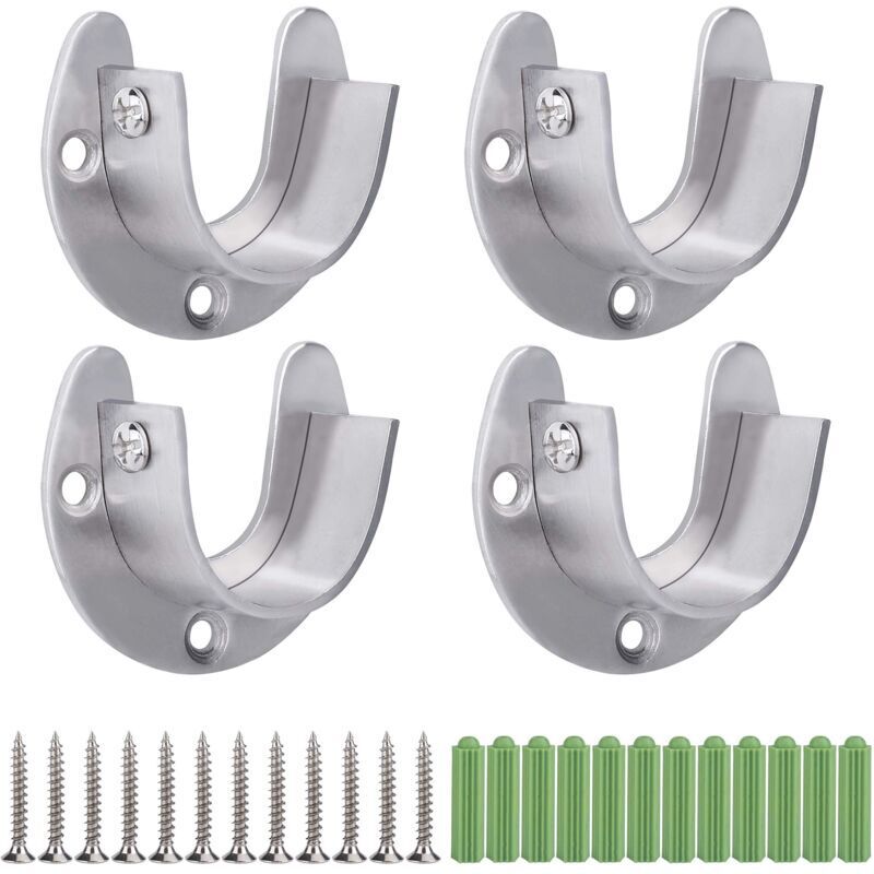 Support de Tringle à Penderie en Acier Inoxydable, 4 Pièces Support de Tringle à Rideaux en Forme de U, Douilles de Tube Rond Robuste avec Vis (32mm)