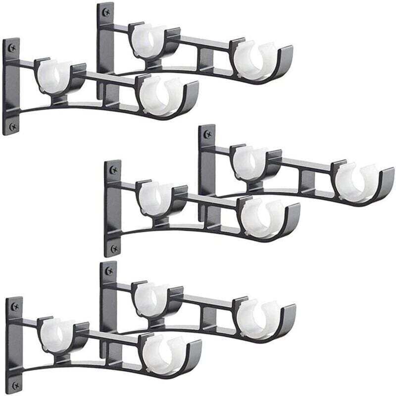 6Pièces Tringle à Rideau en métal Robuste, Support de Tringle à Rideaux,Double Tringle à Rideau Pole Holder, Support Rideau,Support de Tringle à