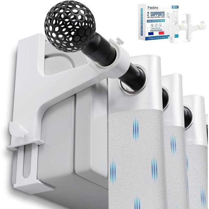 Support Tringle à Rideau Sans Perçage ni Outil - Lot de 2 pour Coffre Volet Roulant - Ø16-28mm en Métal Blanc