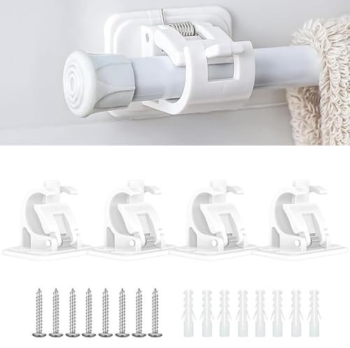 GIUSOBG Supports de Tringle à Rideau Auto-adhésifs 4 Pièces Support Tringle Rideaux sans Percage Blanc Support de Tringle à Rideau Support Tringle Rideaux pour Tringles à Rideaux, Salles Bains