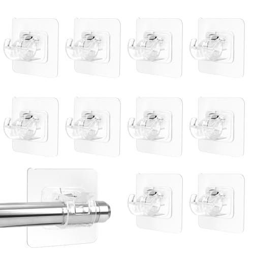 Huihang Lot de 10 Support Tringle Rideaux sans Percage Accroche Rideau sans Percage Kit Rideau sans Percage Transparents pour tringles à Rideaux, Barres Porte-Serviettes, Salle de Bain, Cuisine