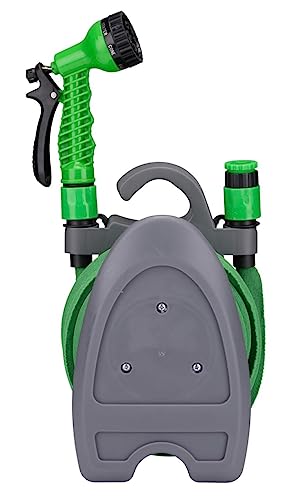 Kinzo Tuyau d'arrosage flexible 10 m – Avec accessoires et support de tuyau d'arrosage – Buse avec 7 modes de pulvérisation – Plastique – Vert/gris