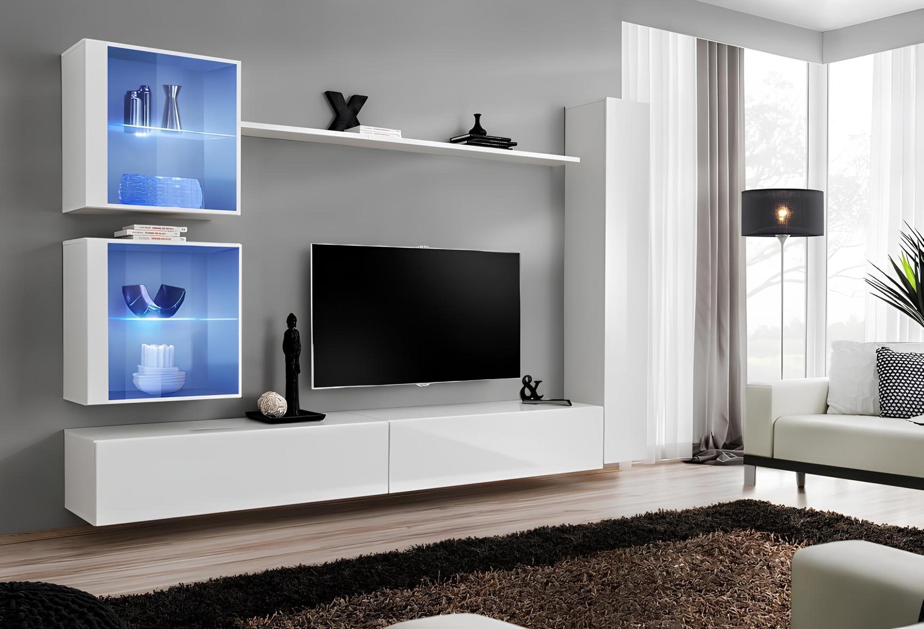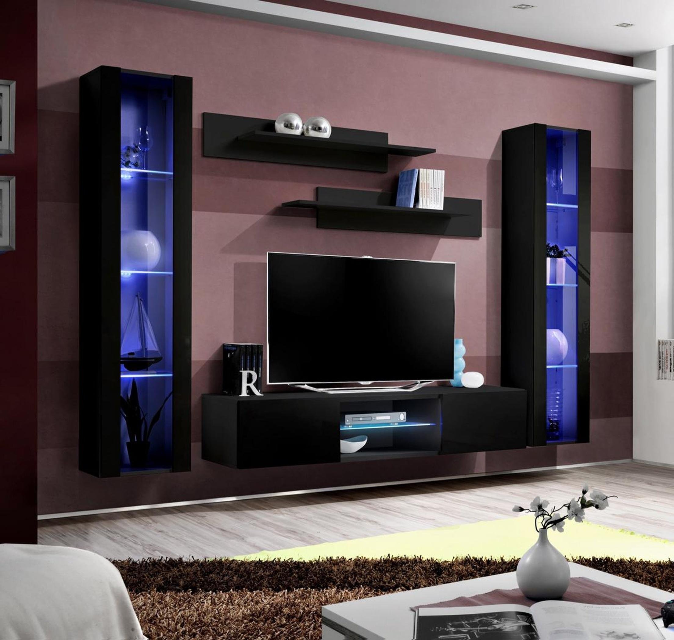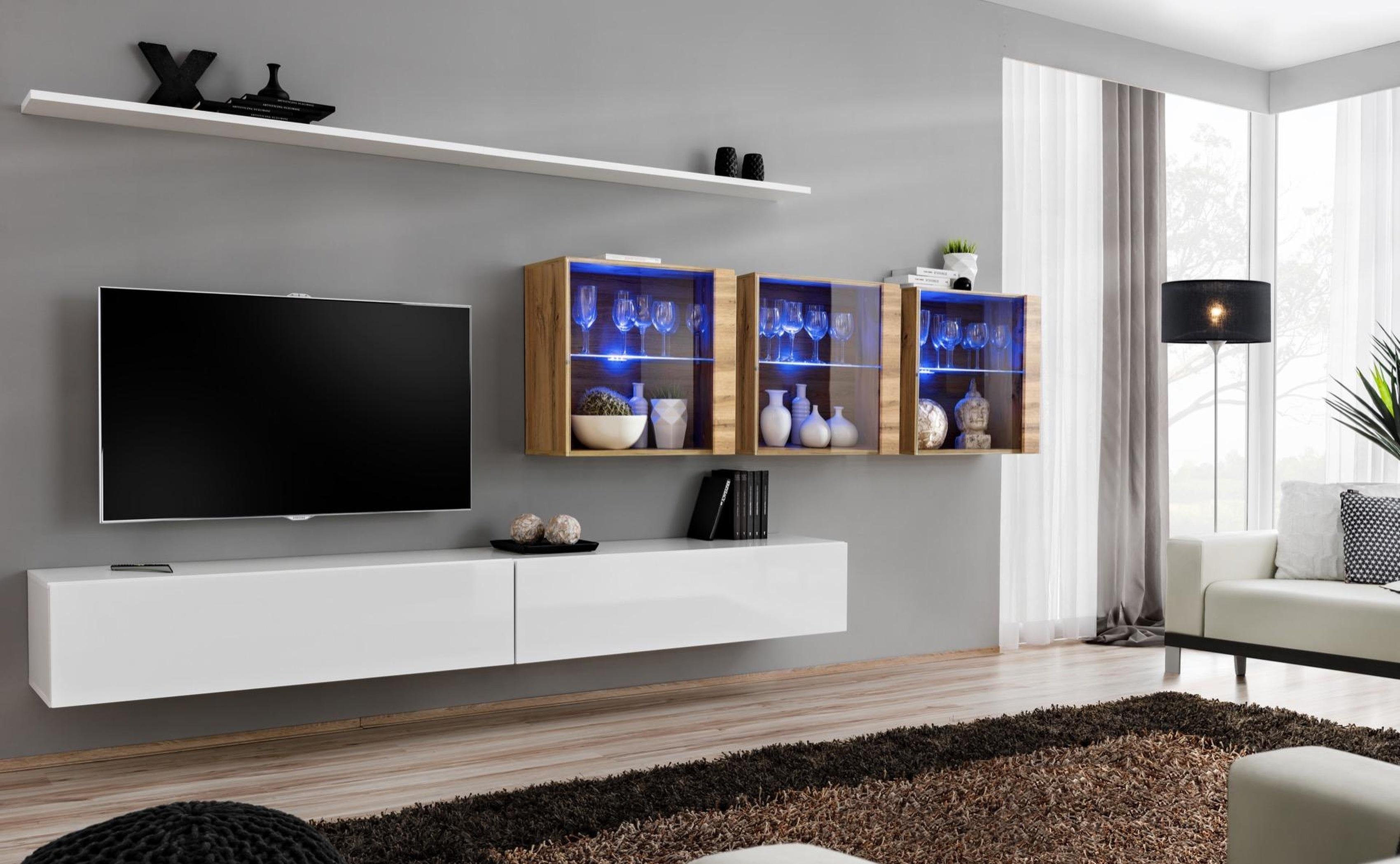 Grand ensemble de salle à manger Table de salle à manger 6x chaises Support TV Étagère murale design