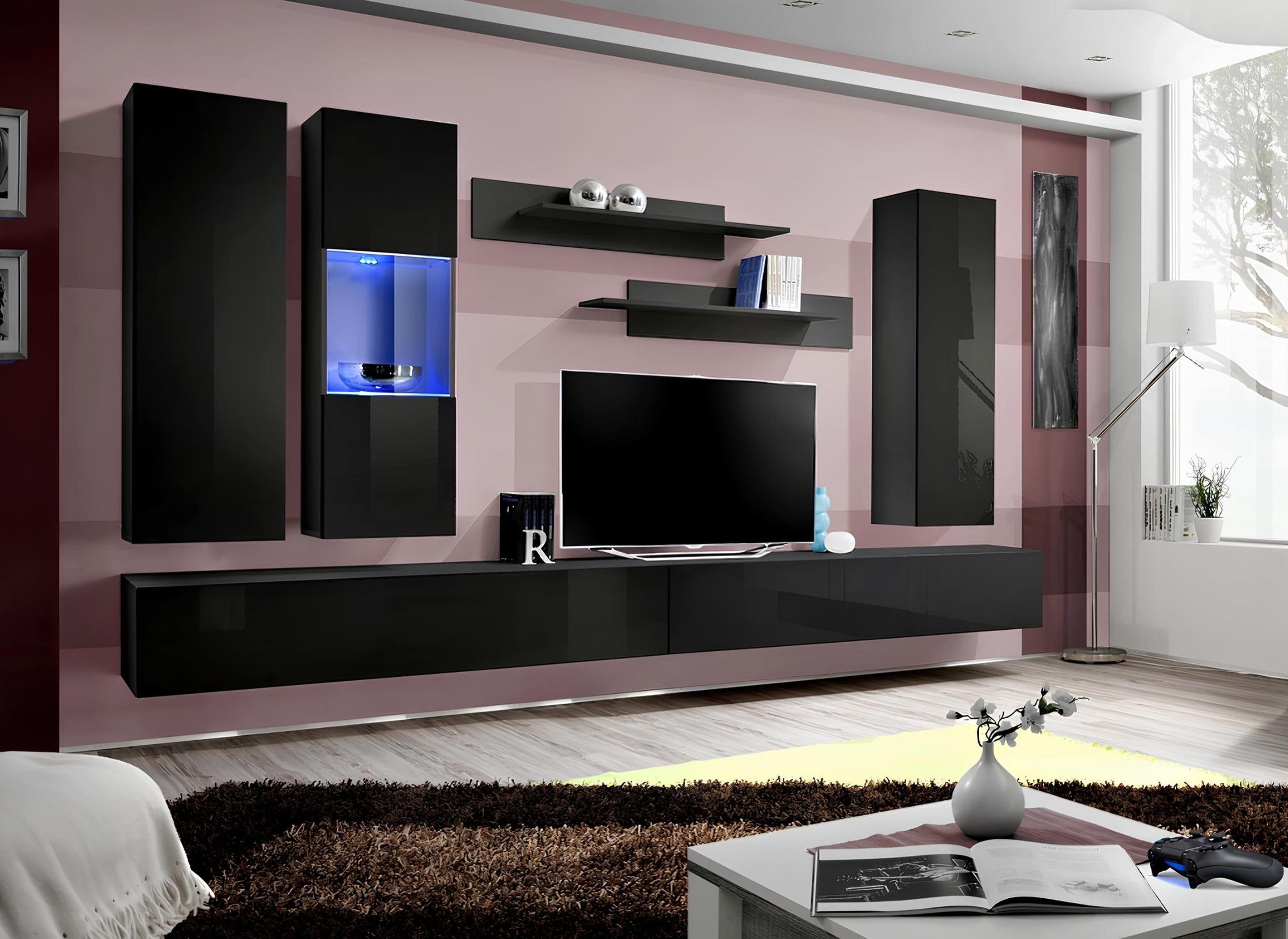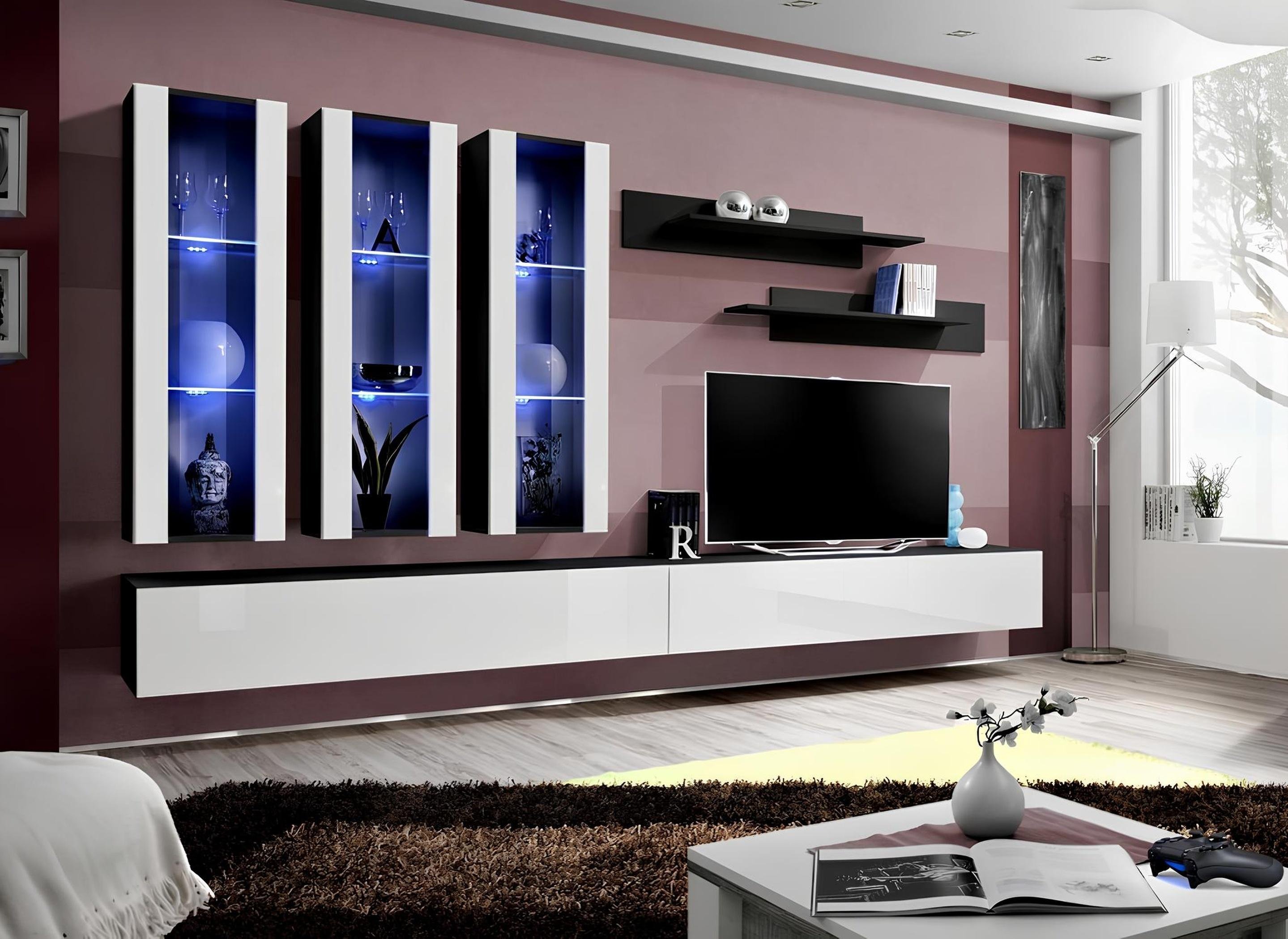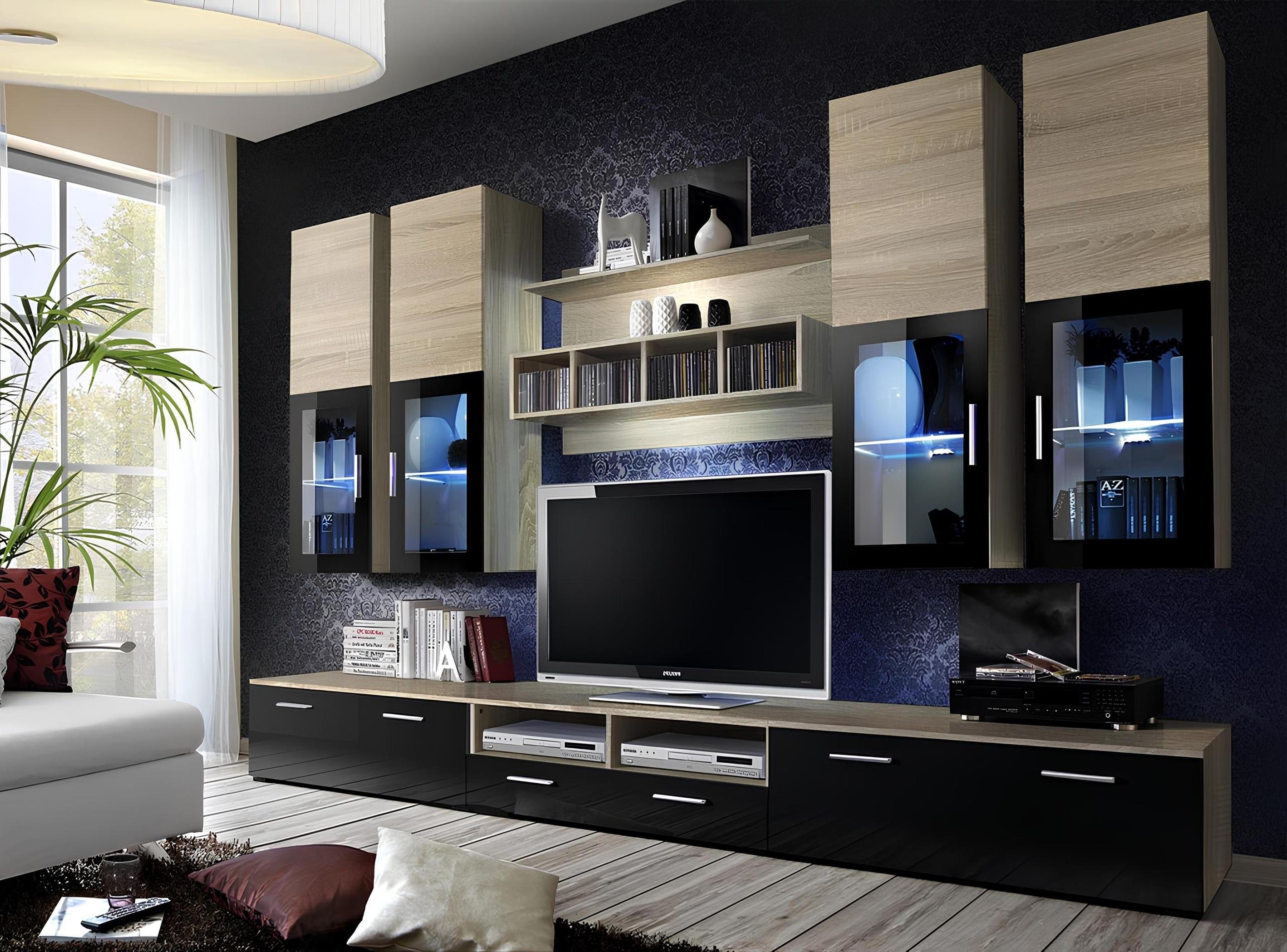 Grand ensemble de salle à manger Table de salle à manger 6x chaises Support TV Étagère murale design