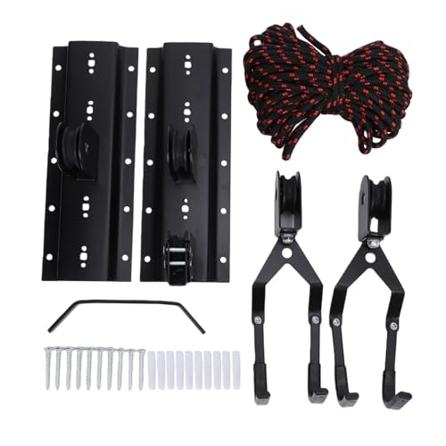 Tbest Système de Levage de Vélo à Poulie Suspendue, Fixation au Plafond, Support Robuste pour Vélos, Kayaks, Canoës et échelles, Noir, capacité 40 Kg (88,18 lbs).