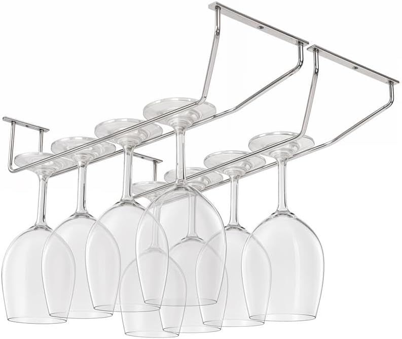YunNasi Support Verre Suspendu, Porte Verres à Vin en Métal, Rangement Verre Installation sous Meuble, pour Bar, Restaurant, Cuisine (4 rangs, Argenté)