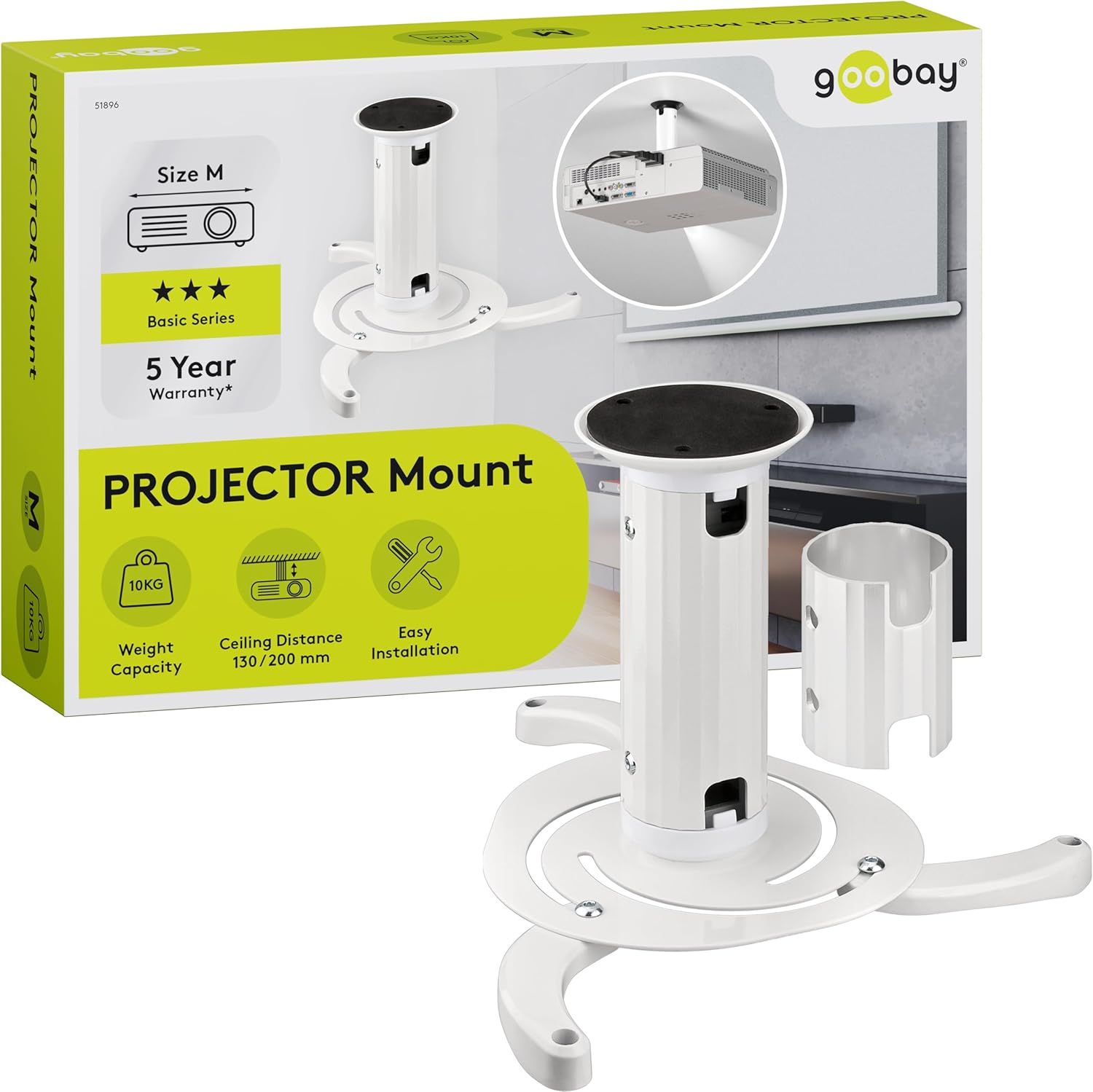 Whychstore Support de vidéoprojecteur, support de plafond réglable à profil bas, support 3 en 1 avec rallonge pour projecteurs LCD/DLP (blanc)