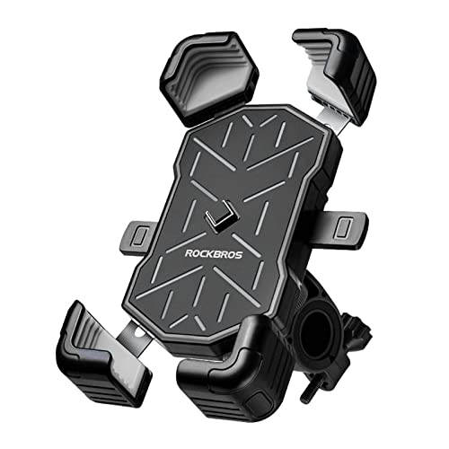 ROCKBROS Support Téléphone Vélo, Support Télephone Moto 360° Rotation, Porte Téléphone Guidon Anti-Vibration Universel pour VTT Moto Trottinette Scooter, Smartphone 4,5-7,2 Pouces,Noir Gris