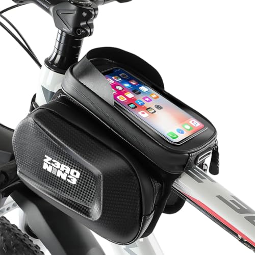Sacoche de Cadre Velo pour Smartphone sous 6,8'', Support de Téléphone Bicyclette, Sacoche Vélo VTT Imperméable Écran Tactile (H)