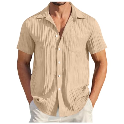 Chemisette Lin Homme, Chemisette Homme Surchemise Chemise À Manches Courtes pour Hommes Chemise D'Été Décontractée À Rayures Solides Chemises De Vacances À La Plage Hawaïennes (Khaki XL)