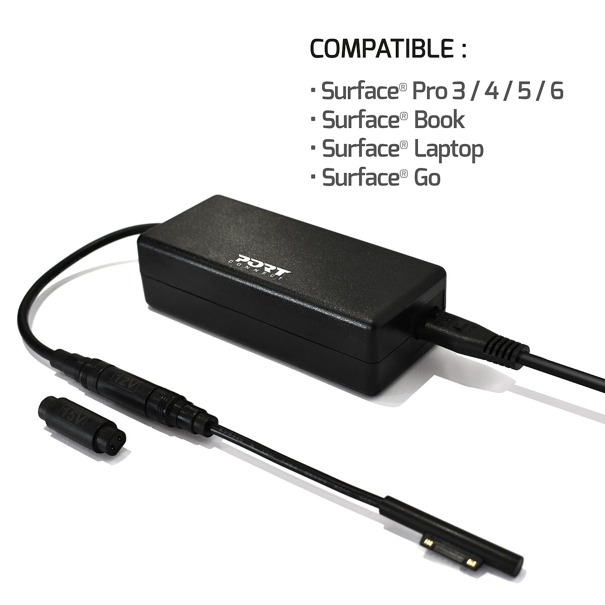 PORT Connect - Adaptateur secteur - CA 100-240 V - 60 Watt - pour Microsoft Surface Book, Go, Laptop, Pro (Mi-2017), Pro 3, Pro 4, Pro 6