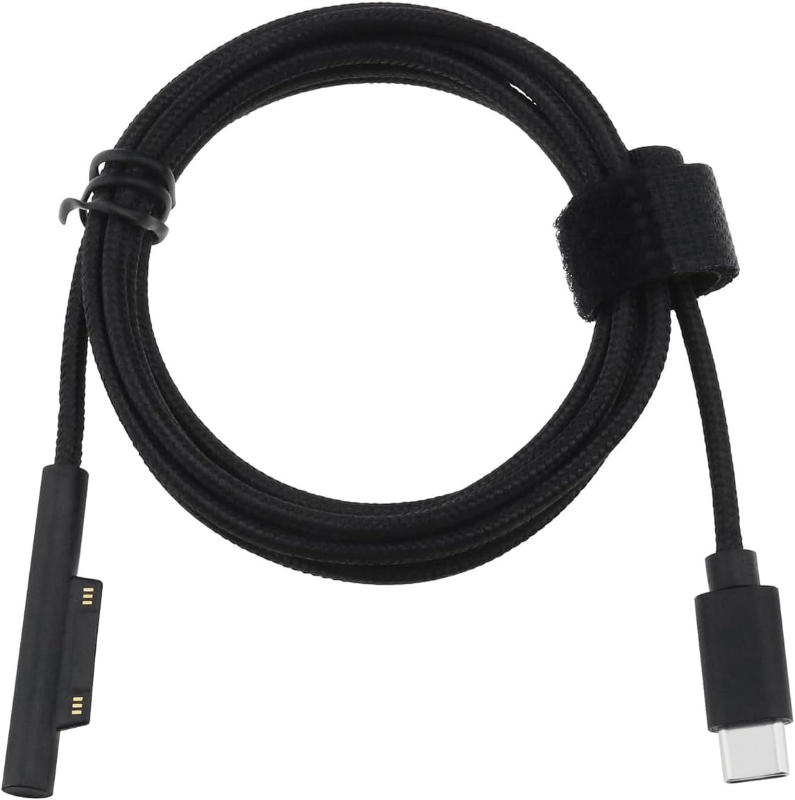 Tuwonwa Surface Connect to USB-C Câble de Charge, 15cm Noir 65W 15V/3A, Adaptateur Universel pour Tablettes et Ordinateurs Portables, Léger, Compact Et Portable