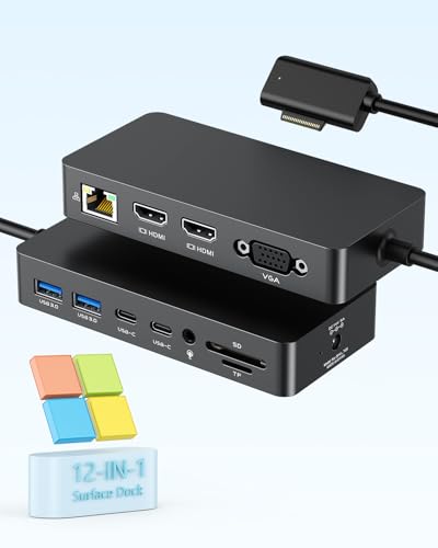 Upgraded 12 in 1 Microsoft Surface Dock, Station d'accueil Surface Pro Triple Display Microsoft Surface Hub Adapter pour Surface Pro 9/8/X/7/6/5/4/3,Surface Book 3/2/1,Surface Laptop go/4/3/2/1