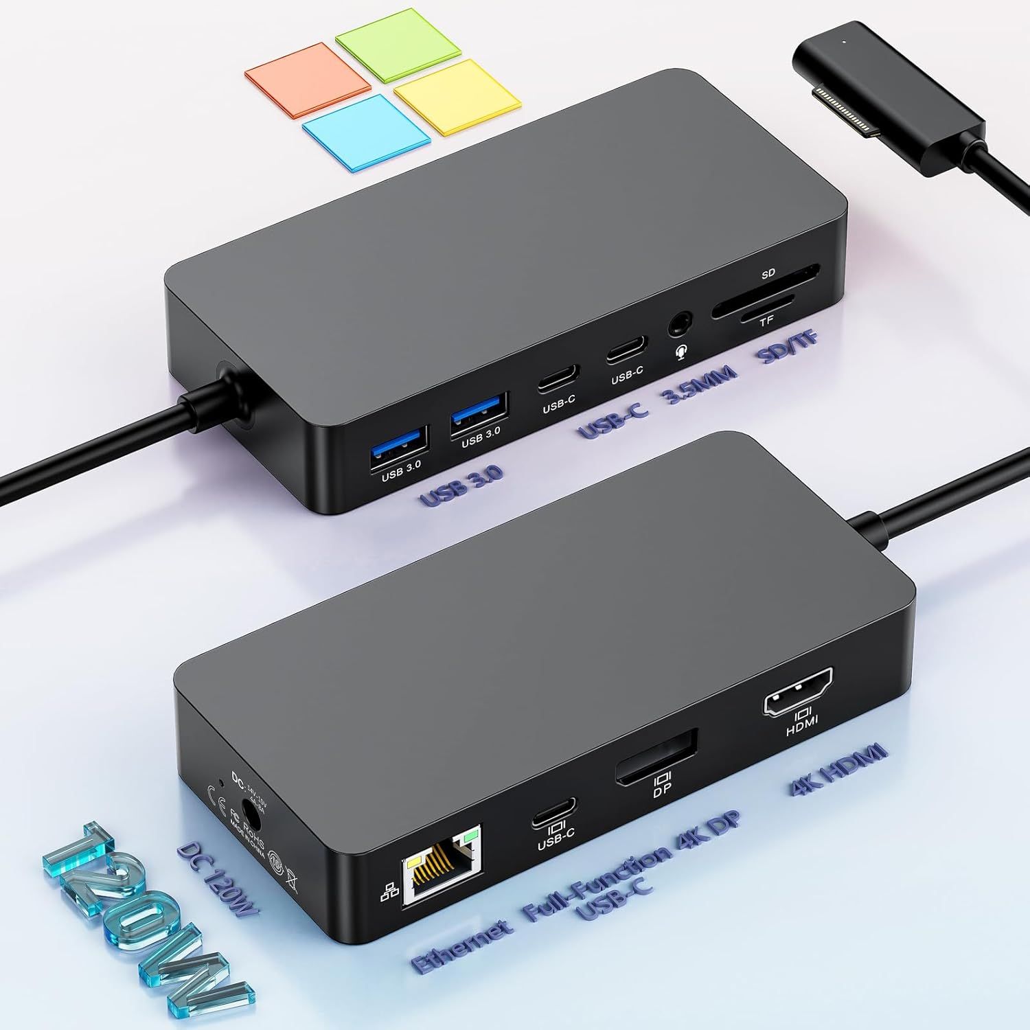 Stations d'accueil Surface Pro 9 Triple Moniteur, Dock Surface avec 4K HDMI, USB-C Thunderbolt 4 (Display+Data+100W PD), 2 USB 3.0, Audio 3.5mm, SD/TF, Adaptateur Hub pour Surface Pro 9/Pro X