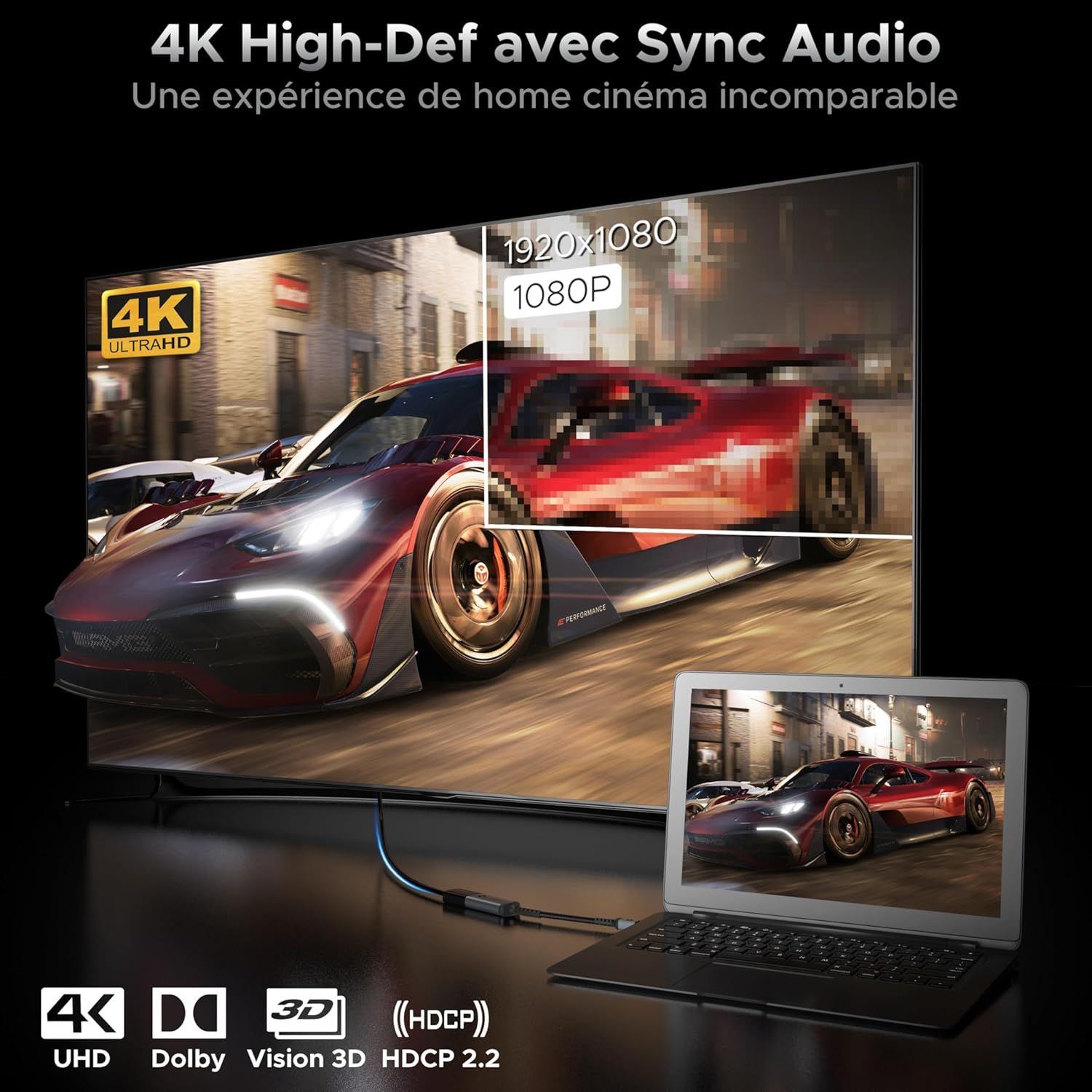 Nersligek Adaptateur Mini DisplayPort vers HDMI 4K, Adaptateur Mini DP(Thunderbolt 2) vers HDMI Tressé Nylon Compatible avec MacBook Air/Pro, Mac Mini, iMac, Surface Pro/Dock, Moniteur/Projecteur/TV