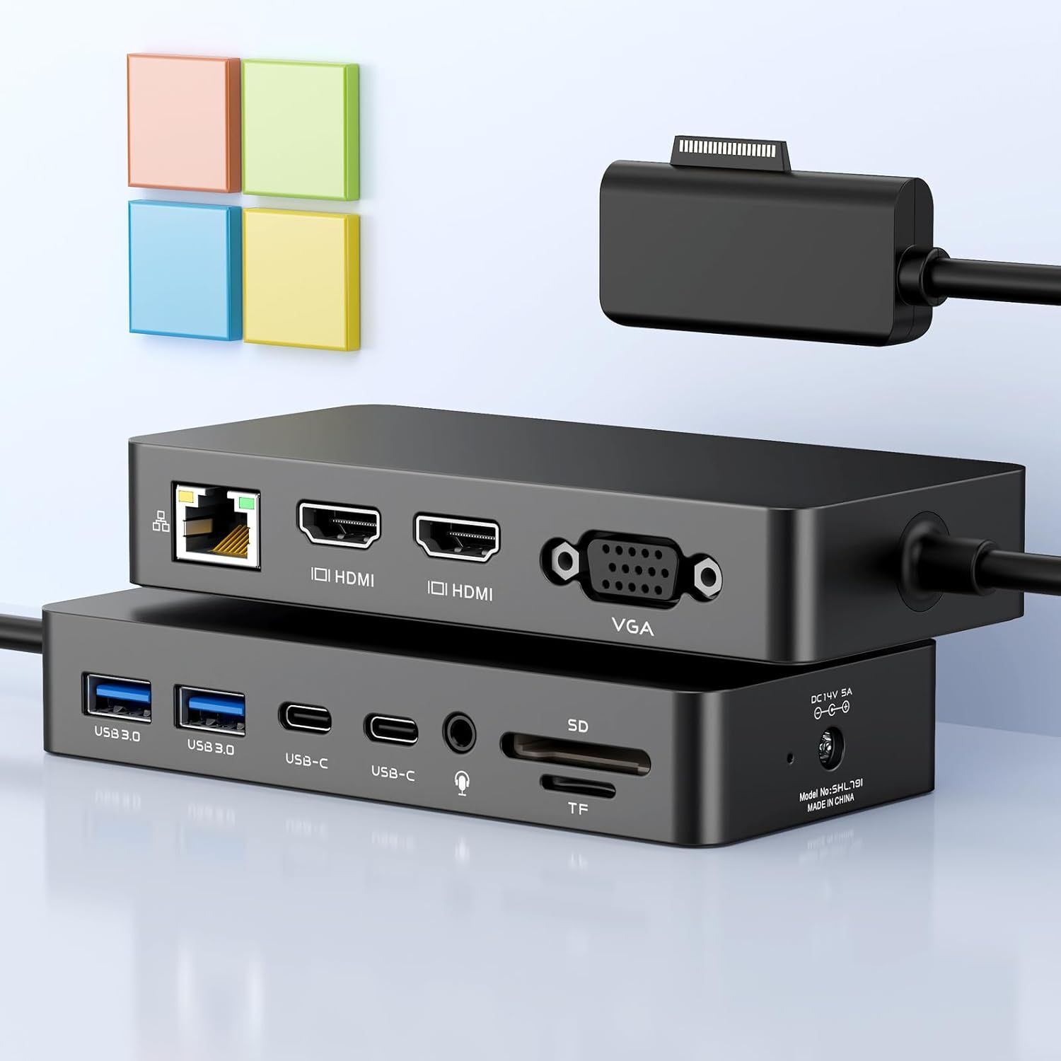 Station d'accueil Microsoft Surface Dock triple écran, double HDMI et VGA, avec adaptateur secteur,12 en 1 pour Microsoft Surface Pro 11/10/9/8/X/7/6/5/4/3,Surface Laptop 7/6/5/4/3/2/1,Surface Book Go