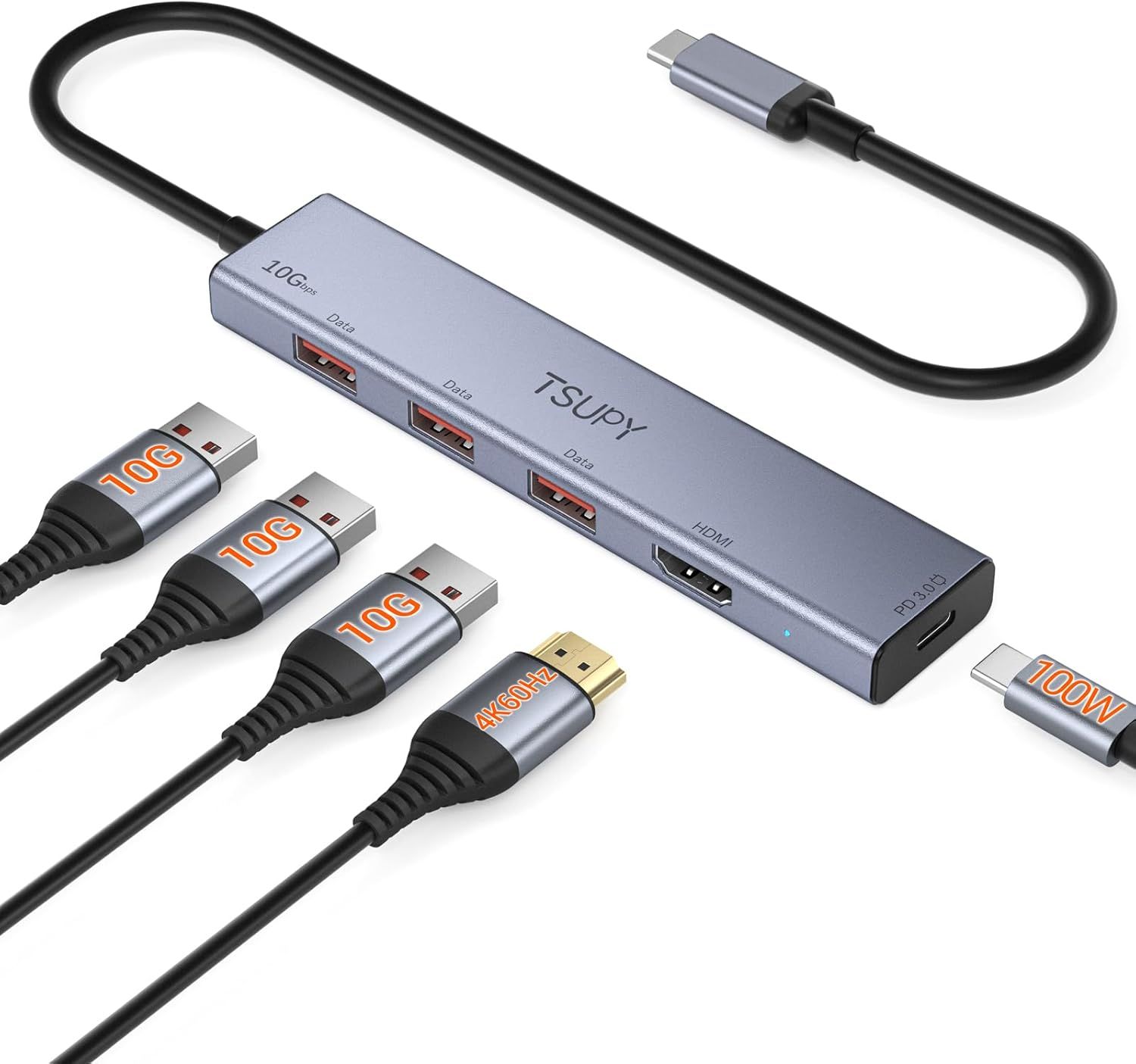 Hamiltion-5 En 1 Hub Usb 3.2 Gen 2 Hdmi 4K 60Hz 100W Pd Charge, 10Gbps Dock Usb C Hdmi, Câble 30Cm Adaptateur Usb-A Vers Usb 3.2 Pour Iphone 16 Pro Max 15 Macbook Ipad Pro Air 2024 Surface Pro Galaxy