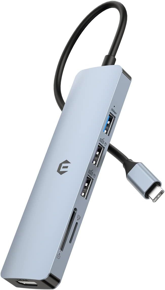 Dockteck Hub USB C Etherent 4K 60Hz HDMI, Adaptateur USB C avec RJ45 LAN, 100W PD, 2 USB-3.0, Lecteur de Carte SD & Micro SD, 7 en 1 Dock pour Steam Deck MacBook Pro/Air, iPad Pro/Air, Surface Pro 7