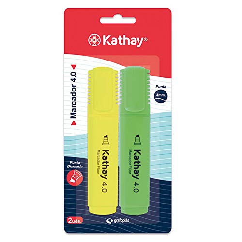 Kathay Lot de 2 surligneurs, couleur jaune et vert, pointe biseautée 4 mm