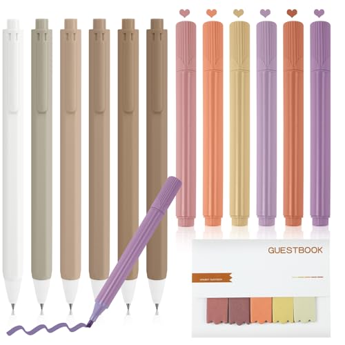 OFFCUP Surligneurs Pastel, 6 Colori Surligneur Marqueurs Paste + 6 Stylos Encre Gel Noire + Note Autocollante, Esthétiques Pastel Highlighter Pen pour Carnet Journal école Maison Bureau (Brun)