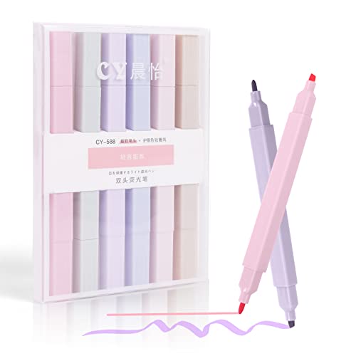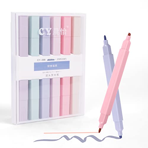 Vicloon Surligneurs Pastel, 6pcs Double Tête Surligneurs Pastel Esthétiques de La Bible, Highlighters de Mignon, Marqueurs de Couleur Douce Pointe Biseautée et Fine pour Lécole, Le Bureau