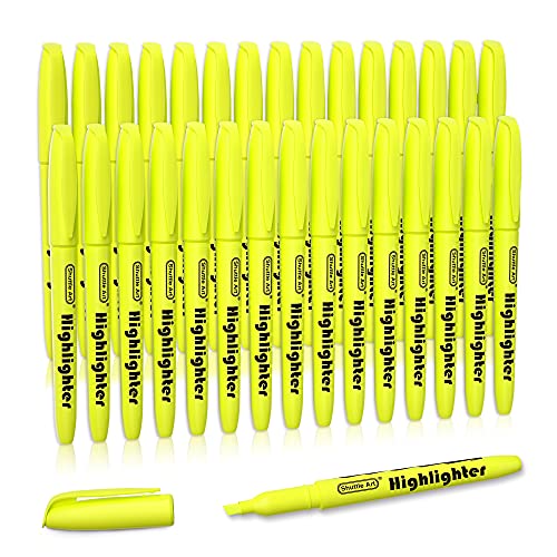 Shuttle Art Surligneur Jaune, 30 Surligneurs Fluos de Couleur Jaune à Pointe Biseautée, Non Toxique et Sécher Rapidement, Bien pour les Enfants et Adultes pour la Soulignage à l’École ou au Travail