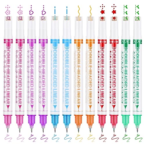 OFFCUP Curve Highlighter Pen Set, 12Pcs Curve Surligneurs Colorées, Surligneurs Courbes à Double Pointe avec 6 Formes Courbes Différentes pour Ecrire, Dessiner et Colorier
