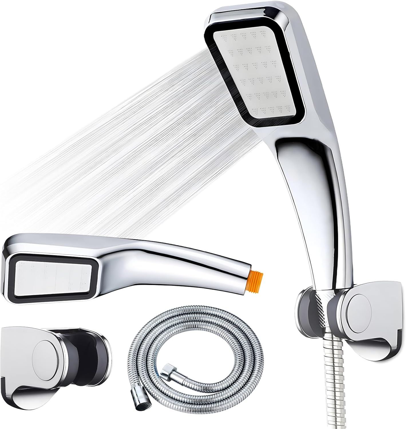 Pommeau de Douche Kit, Pommeau de Douche, Flexible en Acier Inoxydable de 1,5 m, Support Réglable, Surpresseur Eau Sous Pression à 300 Trous, Support à 37 Degrés - Pour Baignoire et Douche