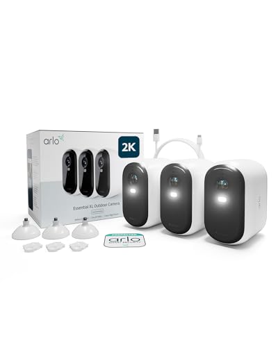 Arlo Essential 2 2K XL, Caméra de Surveillance WiFi Extérieure Sans Fil, Autonomie de 24 mois, Vision Nocturne Couleur, Sirène et Audio Bidirectionnel, Essai Arlo Secure Inclus, 3 Caméras Blanc