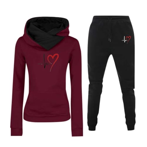 Bastwahl Survêtement Femme Ensemble 2 Pièces Jogging Sport Travail Confortable Survetement Pantalon Pantalon Et Sweat À Capuche avec Cordon Elegant Chic À Manches Longues Imprimé Jambes Larges Outfit