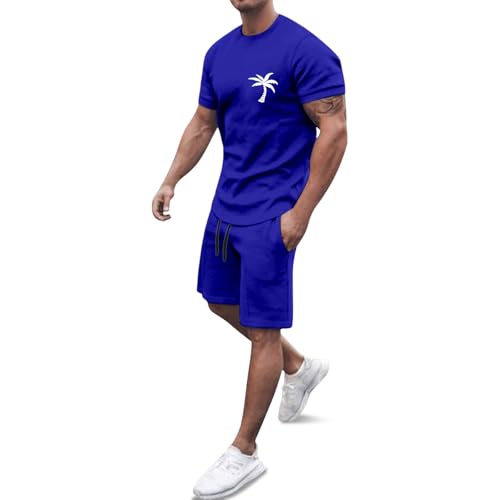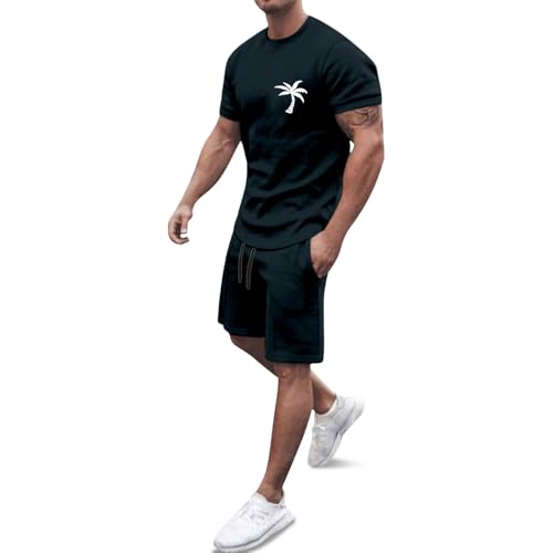 Générique Survetement Homme Sport - Ensemble Ete Survêtement Short Tee Shirt Vacances Plage Costumes Tracksuit Col Round Tenues Grande Taille De Loisir pour Hommes 2 Pièce T-Shirts Cadeau Pas Cher
