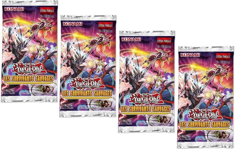 Yu-Gi-Oh , Jeu de 4 boosters de cartes à jouer Wild Survivors, Multicolore