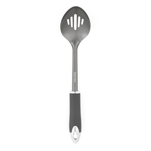 Salter BW11065EU7 Cuillère à Fentes, Ustensile de Cuisine Multifonction, Design Cosmos, Idéale pour Servir et Remuer, Crochet de Suspension, Facile à Nettoyer, Noir/Gris