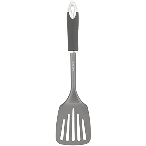 Salter BW11064EU7 Spatule à Fentes, Ustensile de Cuisine Antiadhésif Multifonction, Design Cosmos, Idéale pour Servir et Séparer les Aliments, Crochet de Suspension, Facile à Nettoyer, Noir/Gris