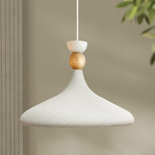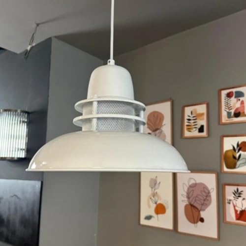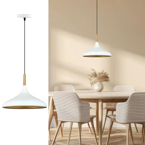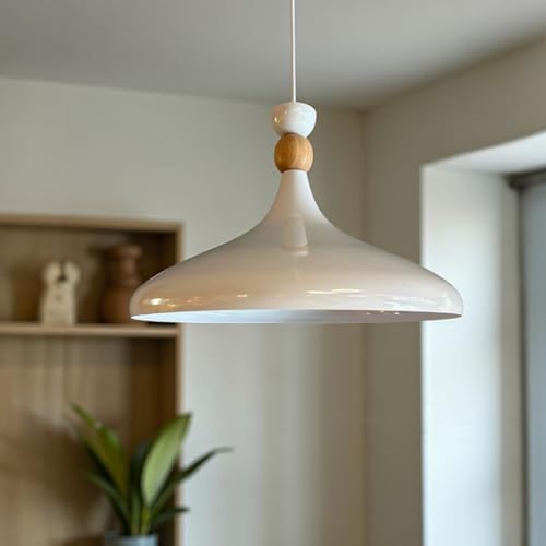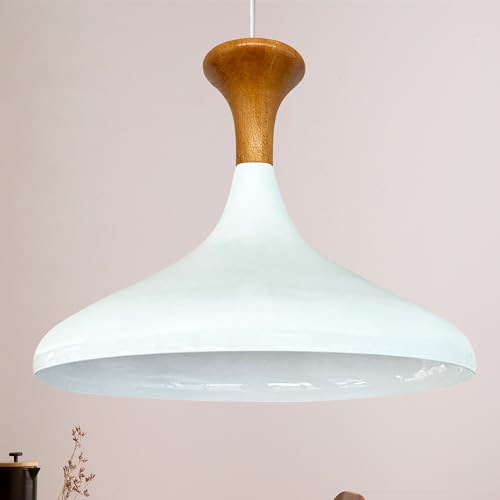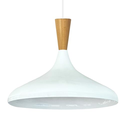 bamyum Champion Lampe à Bois Suspension Moderne en Metal de 35 cm, Lustre de Salon, Chambre, Cuisine, Suspension Luminaire Plafonnier, Éclairage de Plafond, Lampe Suspendue Blanc