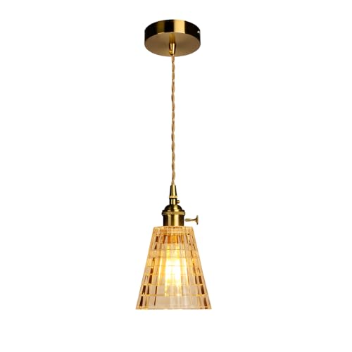 niuniaj Lustre Suspension Verre Lustre Cuisine Suspension Luminaire E27, 1 Culot,Abat-Jour Ambre, Lustre Rétro Style Industriel pour Salle à Manger Cuisine Chambre(Ampoule Non Incluse)